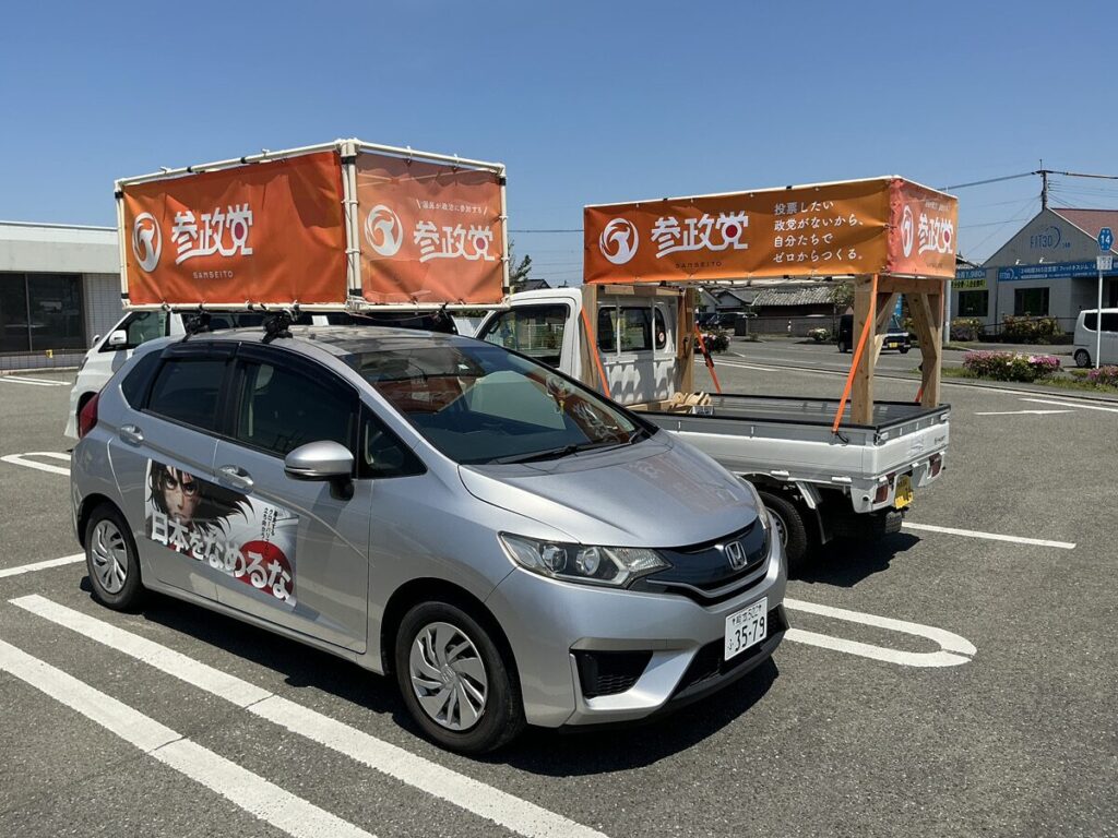 第4支部 熊本県内初の2台を並走しての街宣活動を行いました。(八代市内)