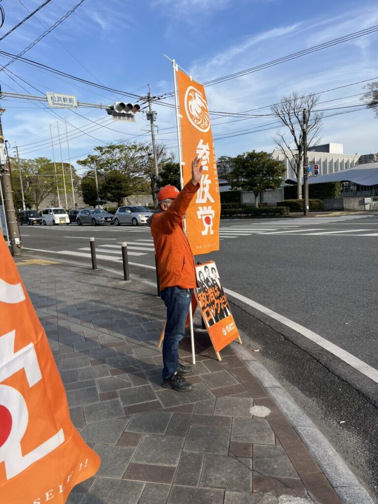 第4支部 水俣市役所前 17:20~17:50 夕方の辻立ちは初めてなので、 幟を覗き込む方がいらっしゃいました😊 辻立ちの時間をずらして多くの方に参政党を知って頂こうと思います! 肥山美 肥山晴