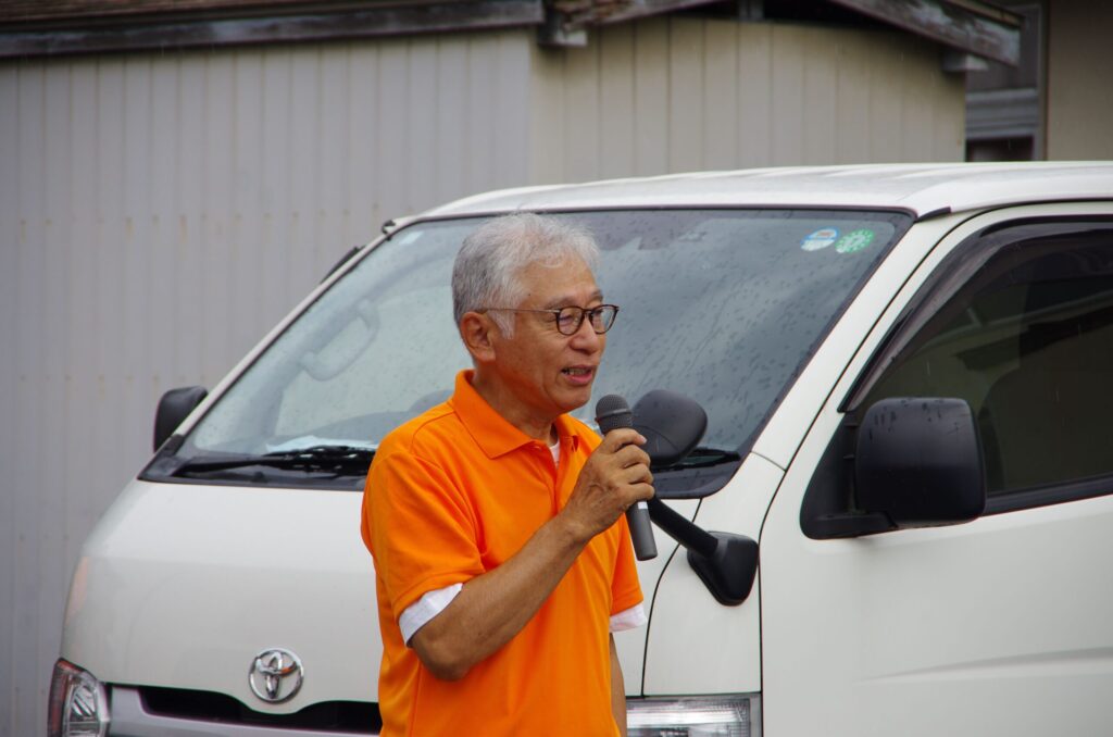 続いて、後援会長の「近宗道弘」氏からは「残り1週間、体調に気を付けながら共に戦い抜こう」と決意が語られました。また具体的な目標として「一、二、参政党!で4,000票を目指す」という言葉もあり、会場の士気が高まりました。