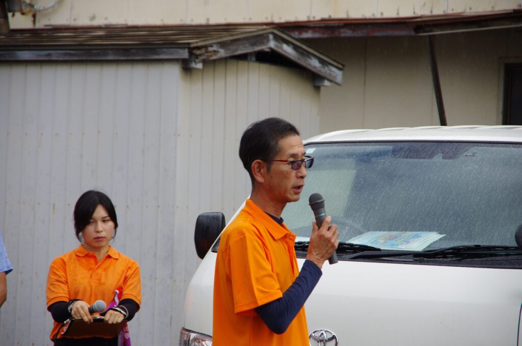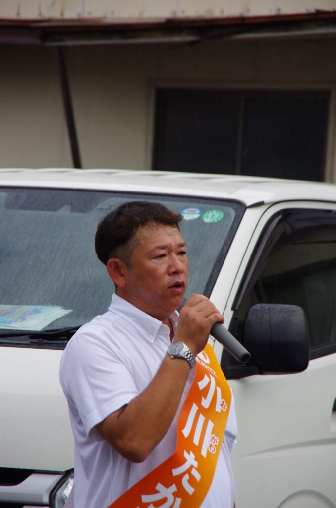次に、高井ちとせ熊本県議会議員より、先日の豪雨災害に触れられ、被災された方々へのお見舞いの言葉が述べられました。その上で、市民の声を受けて「内輪の争いではなく、市民のための政治を進めていく必要がある。そのために「小川たかし」さんを市議会へ押し上げたい」と力強い呼びかけがありました。