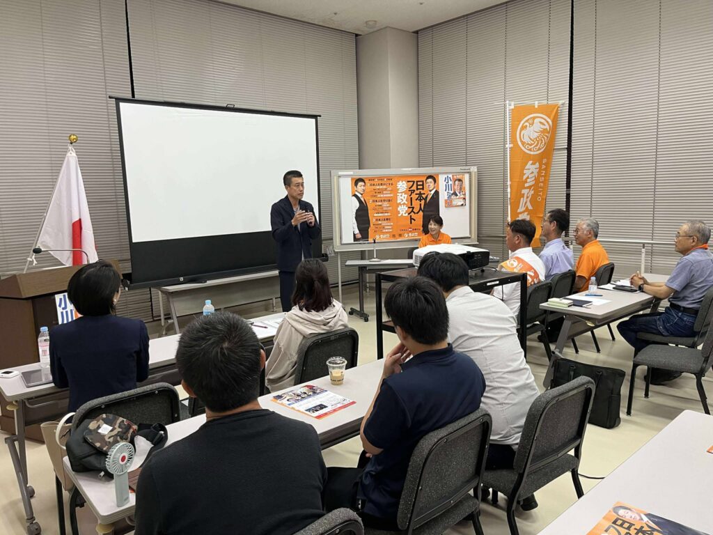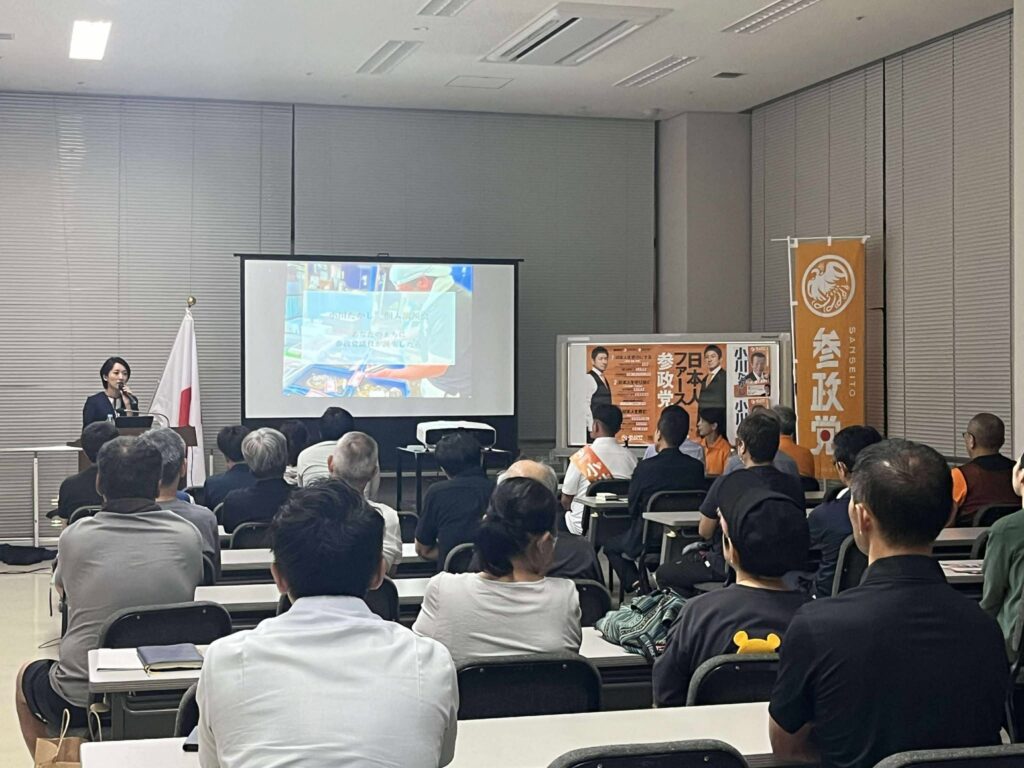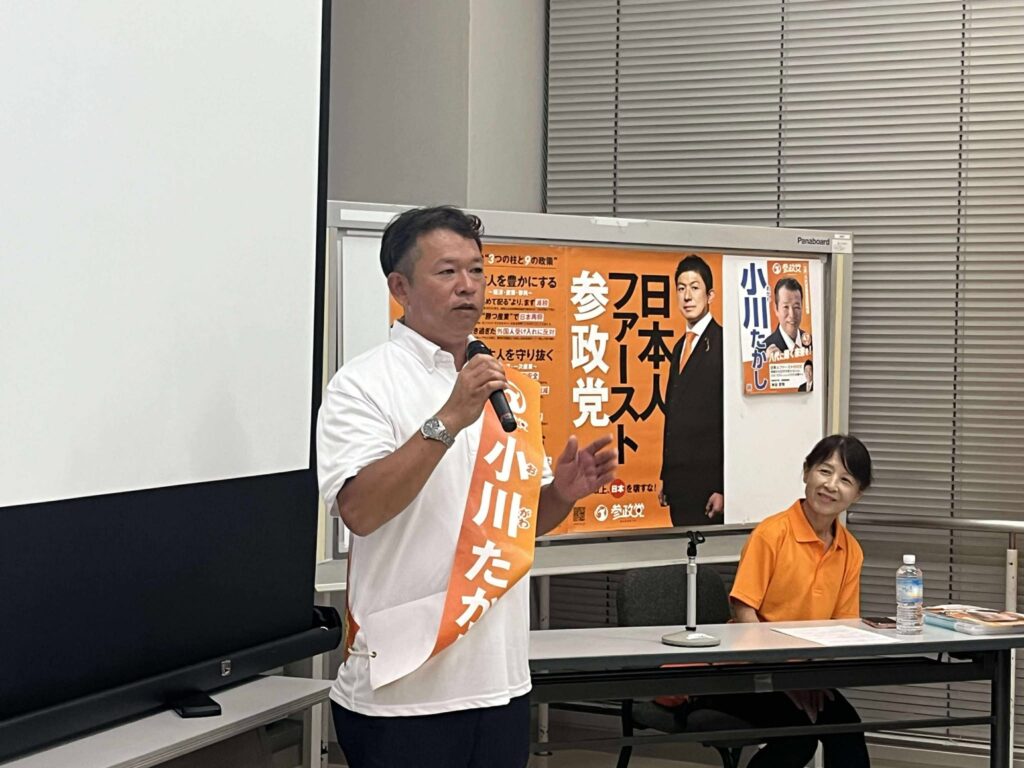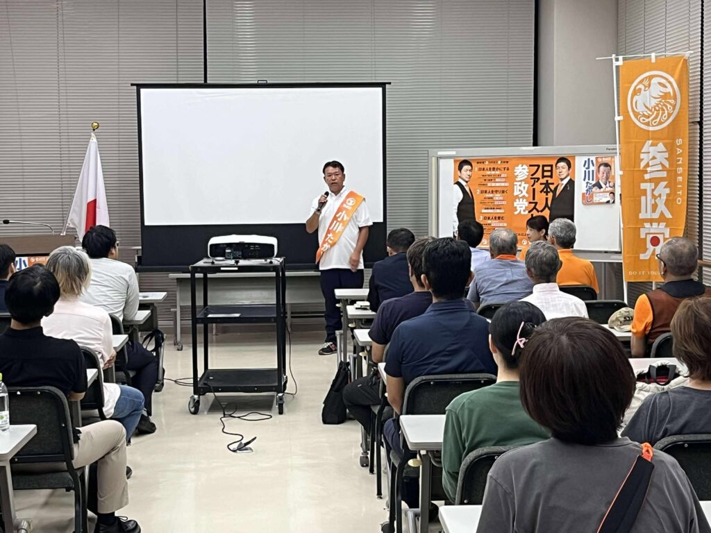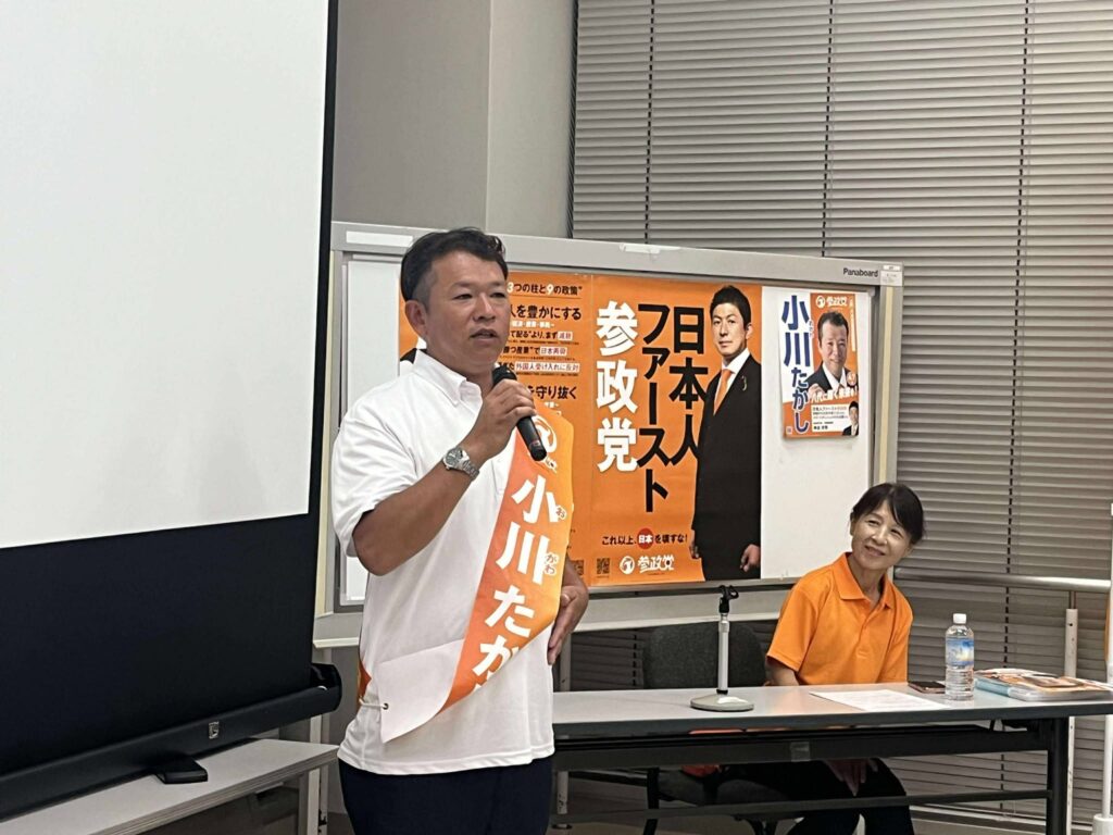 2025年8月27日(水)19時より「桜十字ホールやつしろ」にて「小川たかし」個人演説会が開催されました。