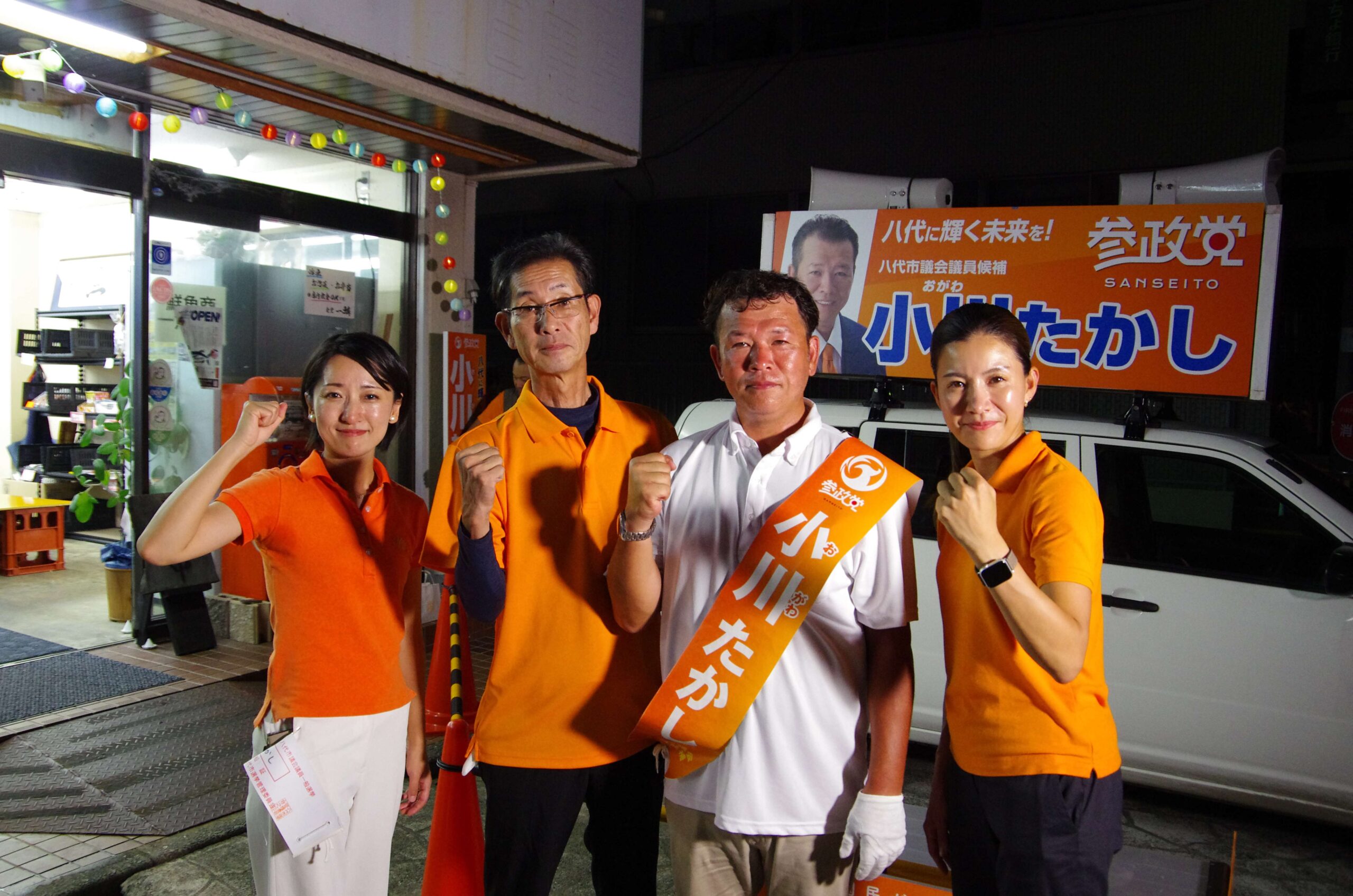 また、八代市の伝統産業や文化を守る必要性に触れ、小川候補が一次産業や地域商店の代表として大きな役割を果たすと力強くエールを贈りました。