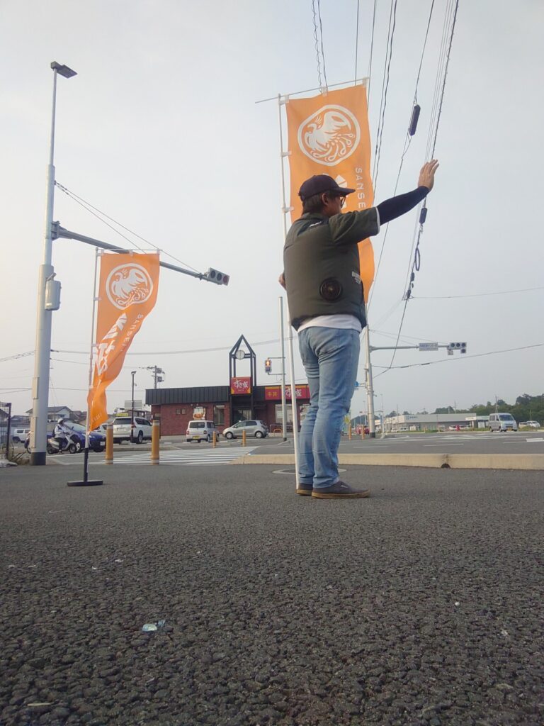 窓を開けてガッツポーズで応えてくれるドライバーさんが4〜5名大きく応えてくれるかたが10名程度。これ程一体感を感じることはありませんでした。頑張らねば!