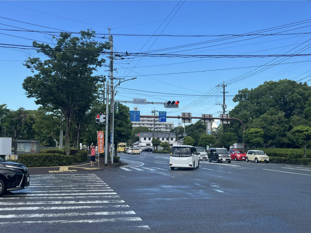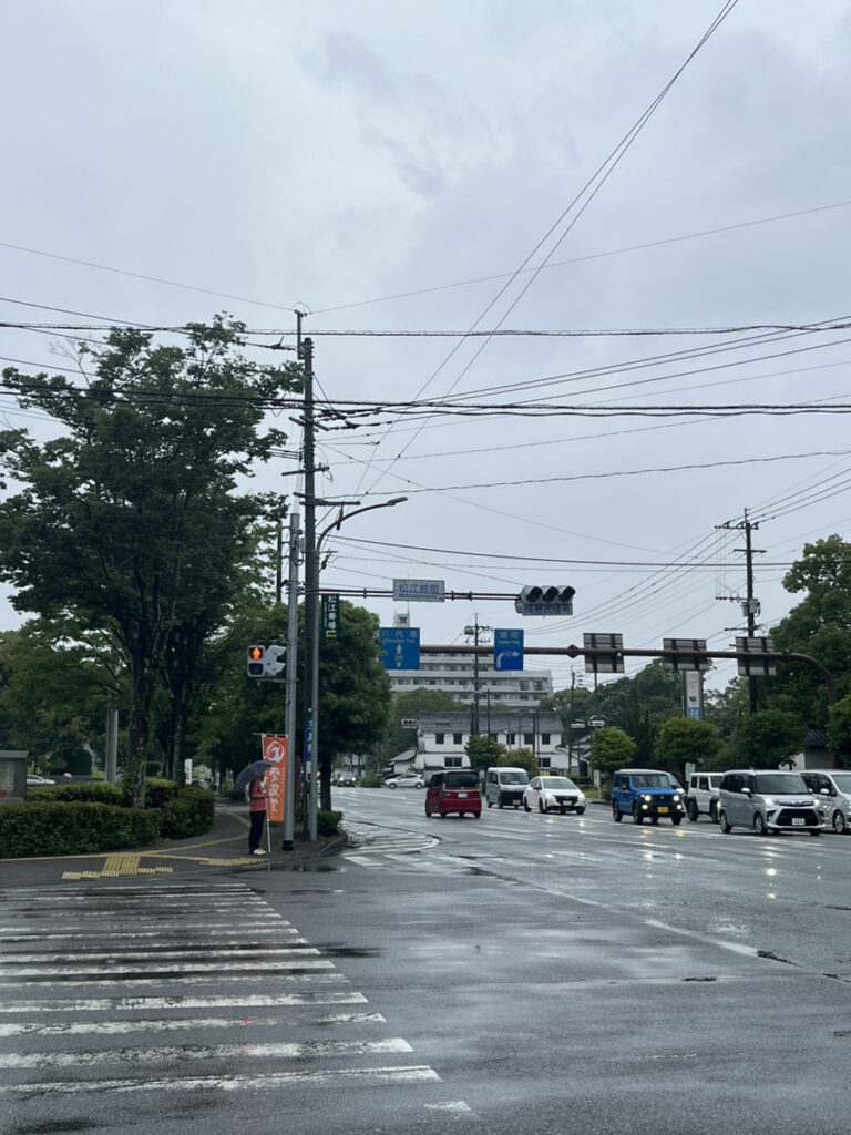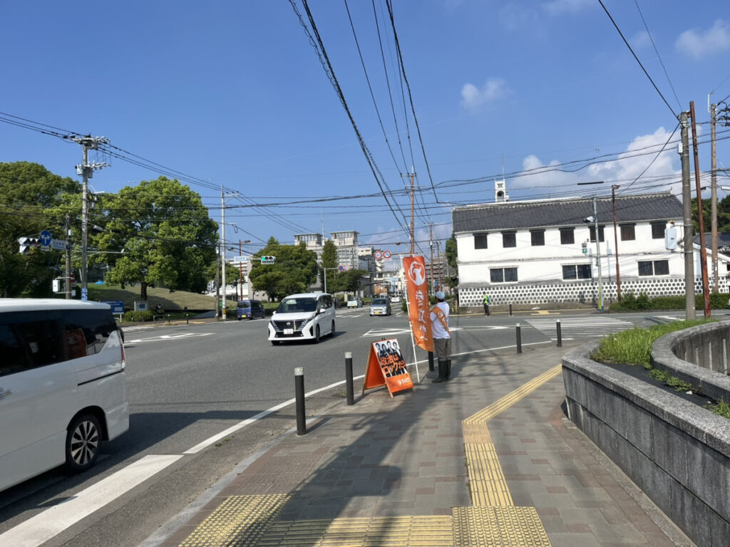 小川さんは毎朝、鏡町交差点と松江城町交差点での二拠点辻立ちやってます!