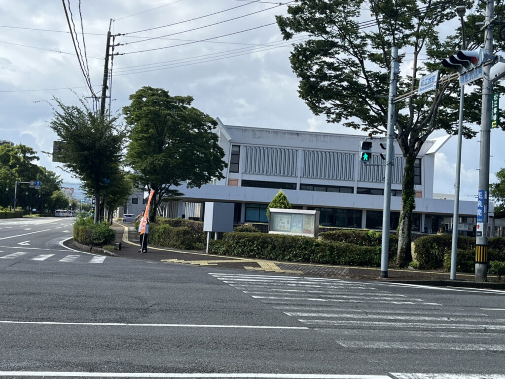 図書館前は今日も現役市議さんが辻立ちされていたので、一つ隣の交差点で行いました。
