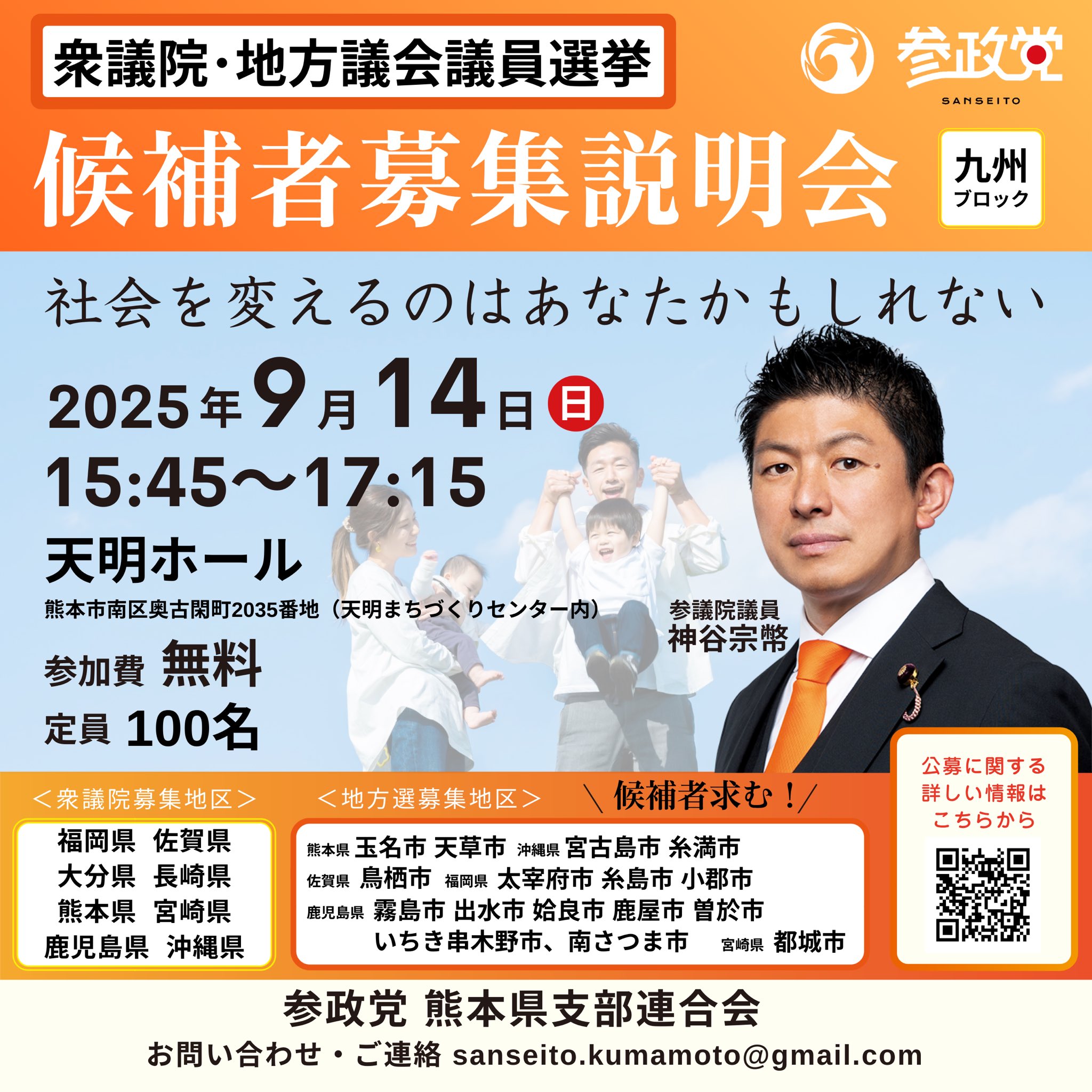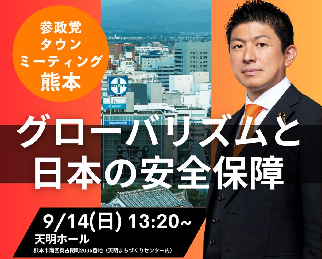 去る9月14日(日)、参政党代表 神谷参議院議員をお招きし、熊本市南区天明ホールにてタウンミーティングが開催されました。