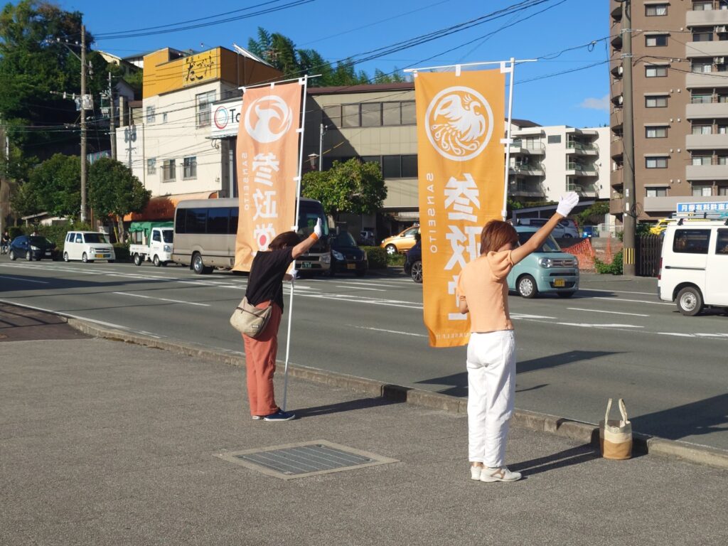 日差しが強くかなり暑かったですが、準備して間もなくからお手振りの応援を頂きました!