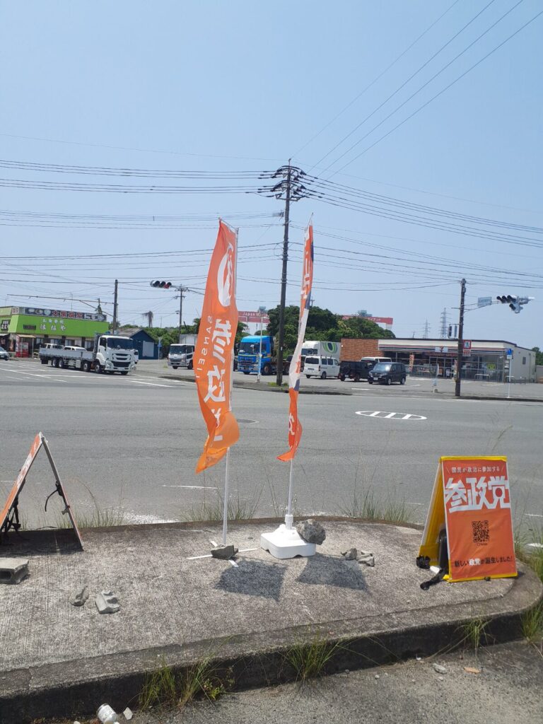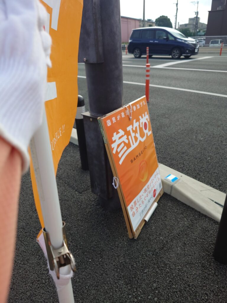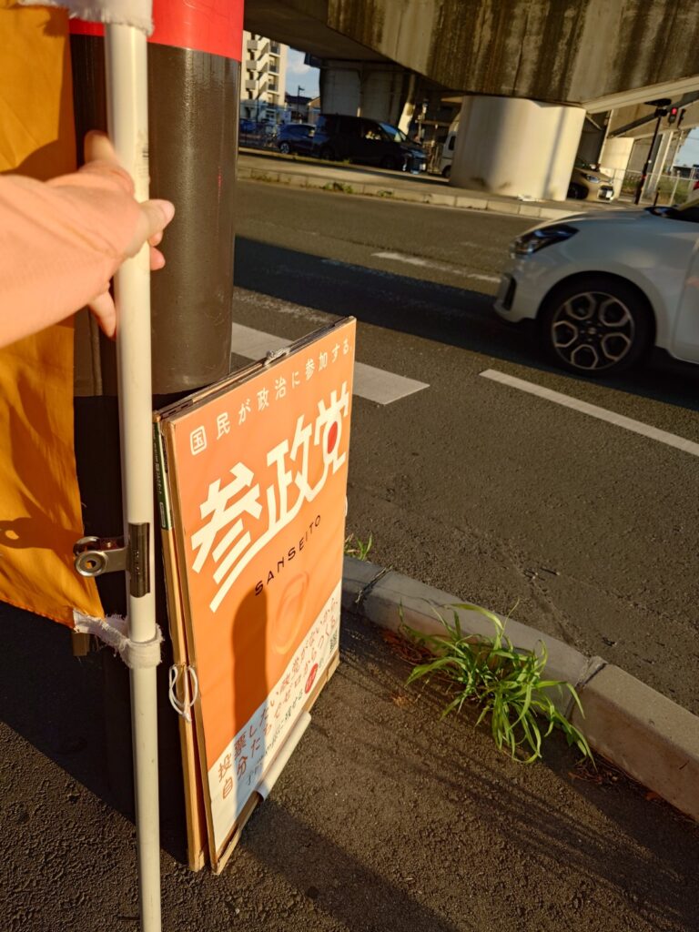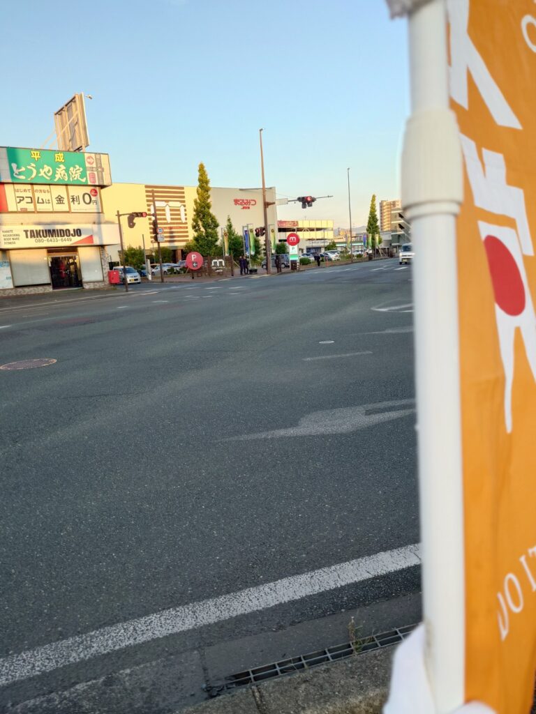 様子見で久しぶりにこの場所に立ってみましたが、看板なしで幟旗だけだったからか、反応は控えめな感じでした。やっぱり看板があった方が良いかもです。