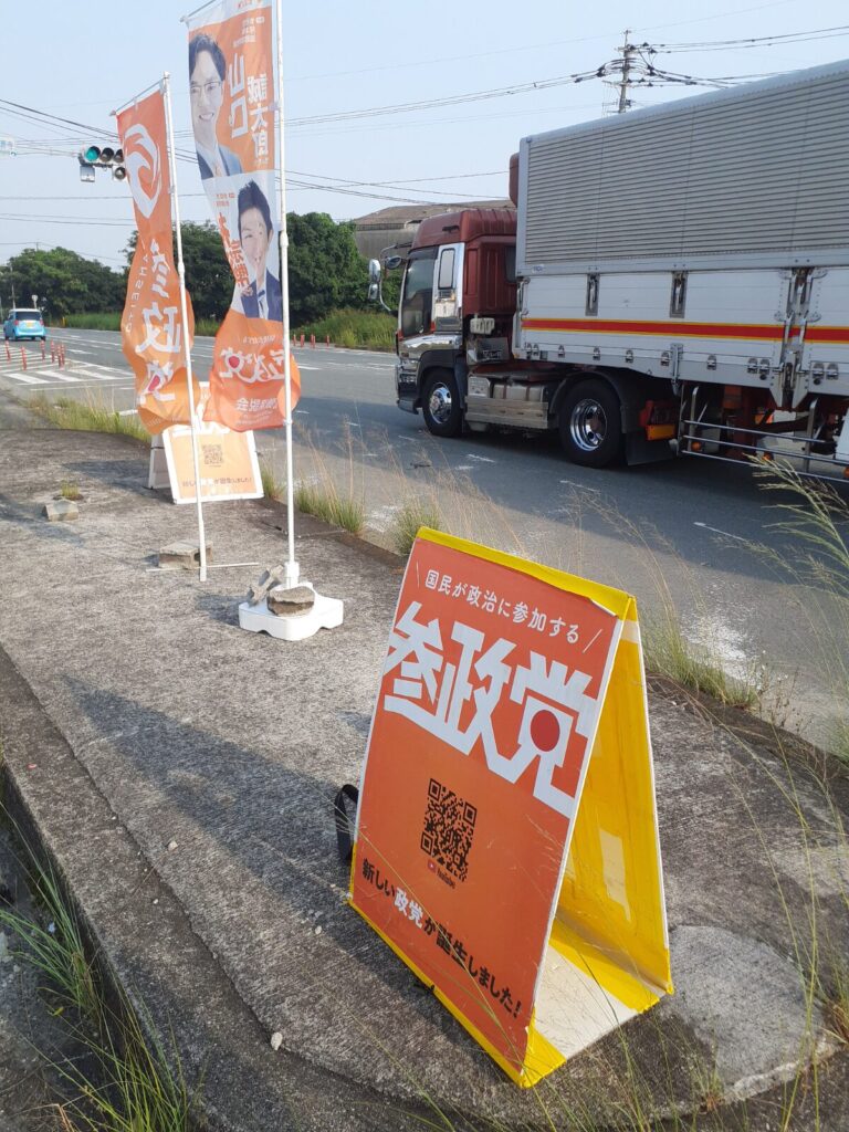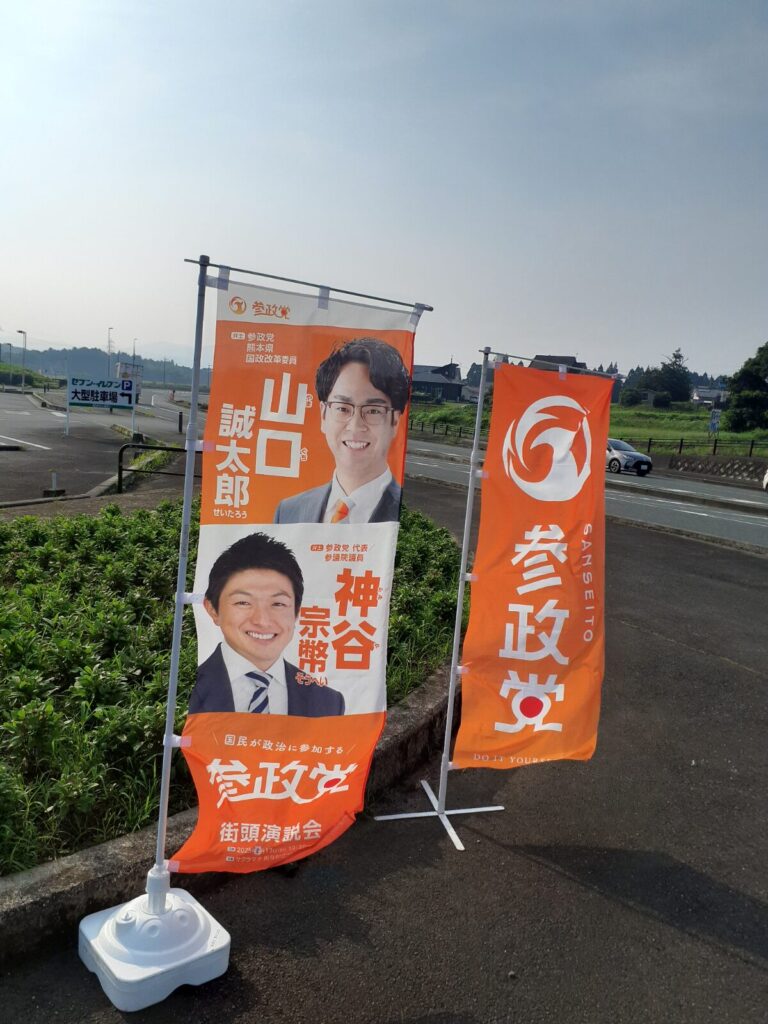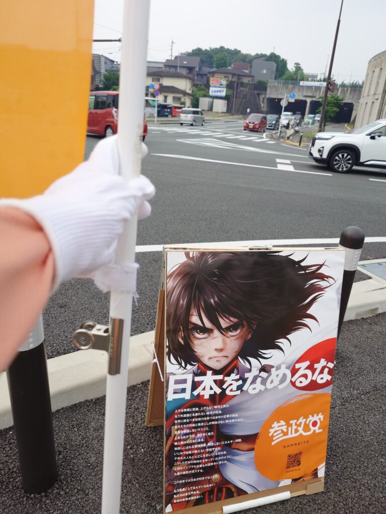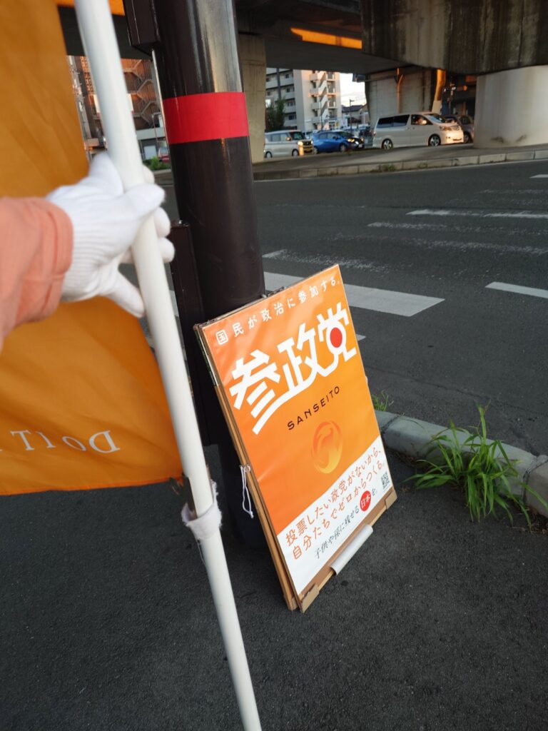 様子見で久しぶりにこの場所に立ってみましたが、看板なしで幟旗だけだったからか、反応は控えめな感じでした。やっぱり看板があった方が良いかもです。
