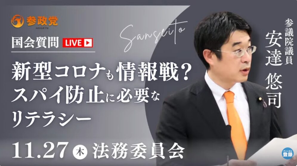 「新型コロナも情報戦?スパイ防止に必要なリテラシー」参議院議員 安達悠司