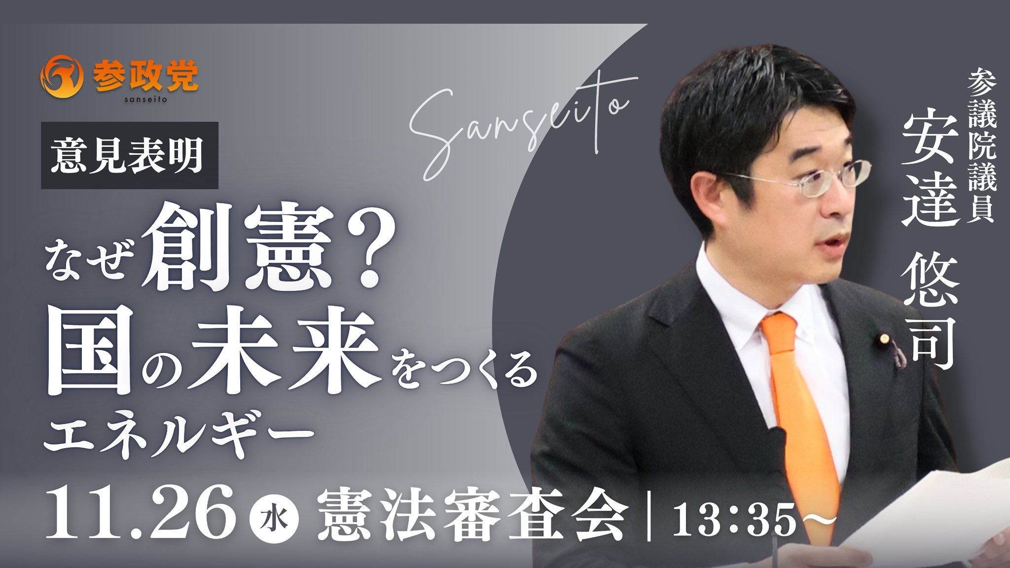 「なぜ創憲?国の未来をつくるエネルギー」参議院議員 安達悠司