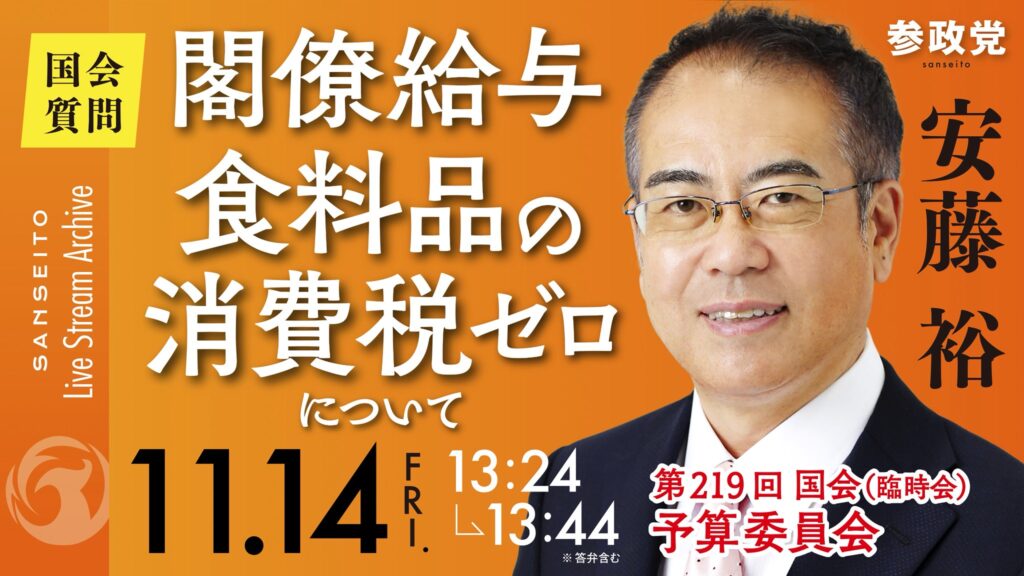 「閣僚給与・食料品の消費税ゼロについて」参議院議員 安藤裕