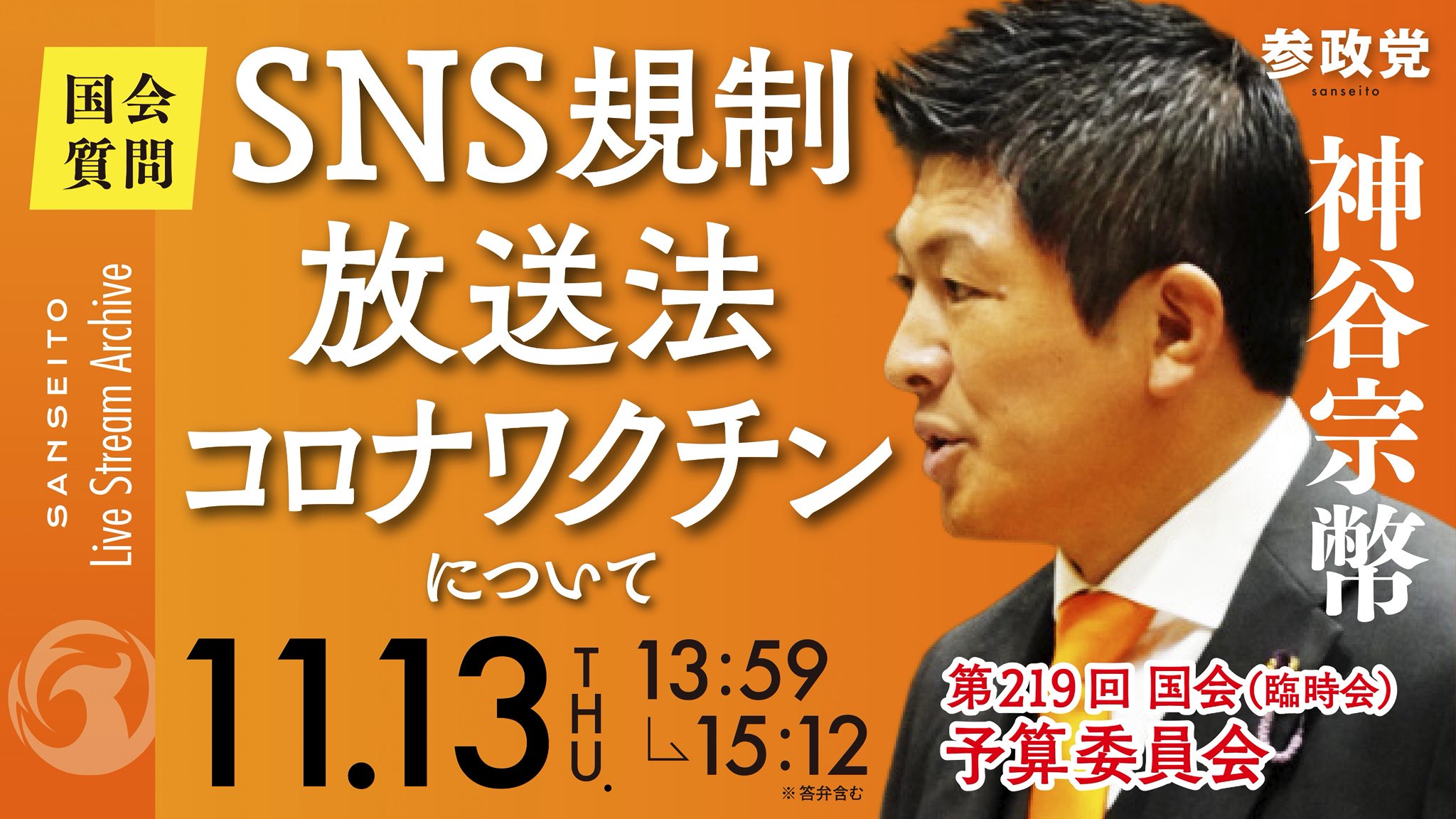 「SNS規制・放送法・コロナワクチンについて」参議院議員 神谷宗幣