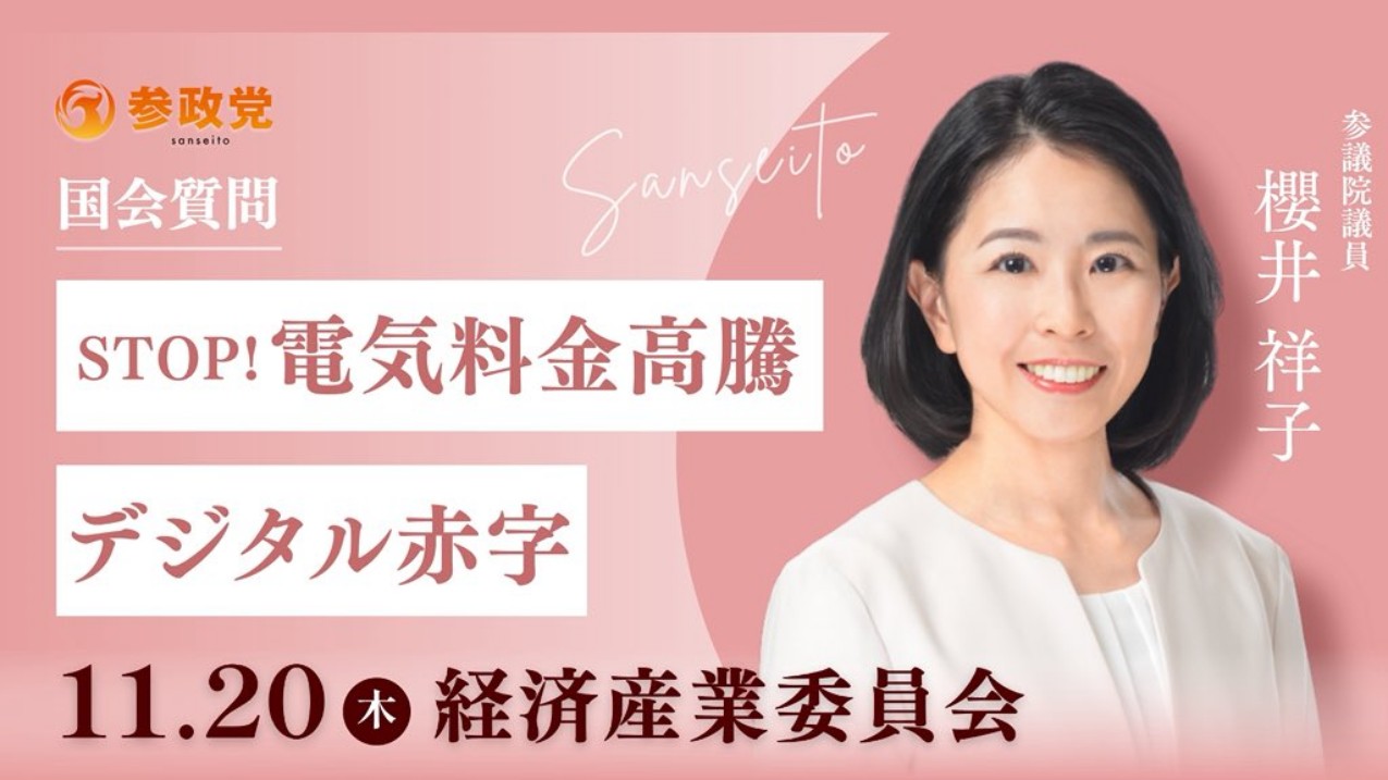 「STOP!電気料金高騰デジタル赤字」参議院議員 櫻井祥子