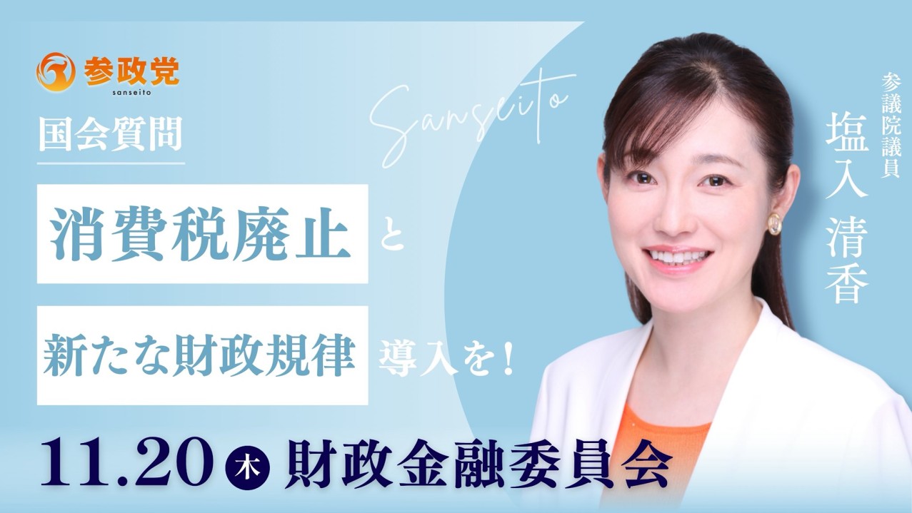 「消費税廃止と新たな財政規律導入を」参議院議員 塩入清香