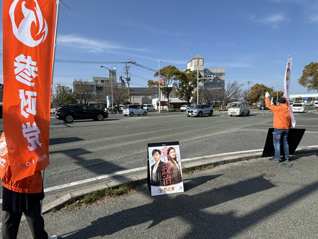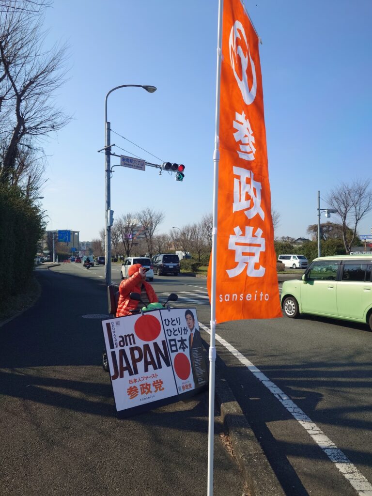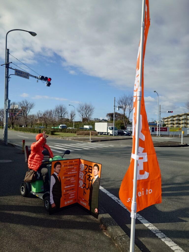 選挙後、初となります。普段より少ない3000台/h程度でしたが、反応は非常に良く、得票率換算で約20%(片車線22人)と衆院選時の倍近くありました。