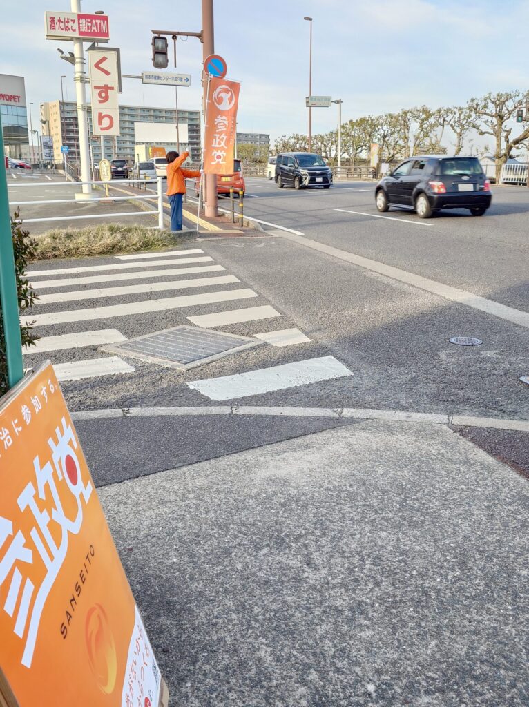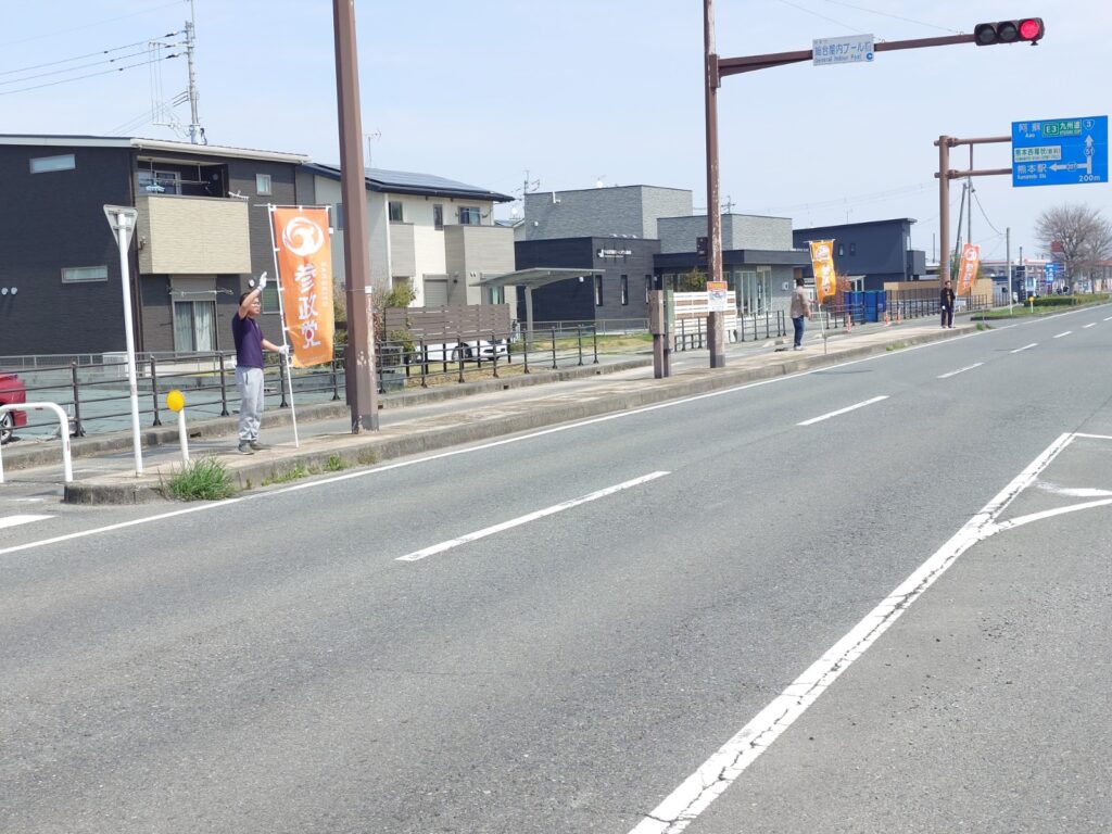 また、自転車の男子学生グループからは「頑張って下さい!」「1、2、参政党!」、ランニング中の男性からは「応援しています!」との声援をいただき、大変に励みとなりました。