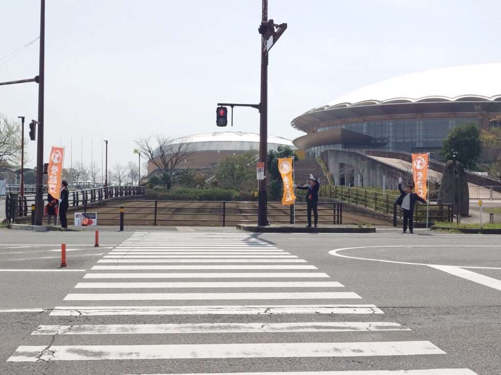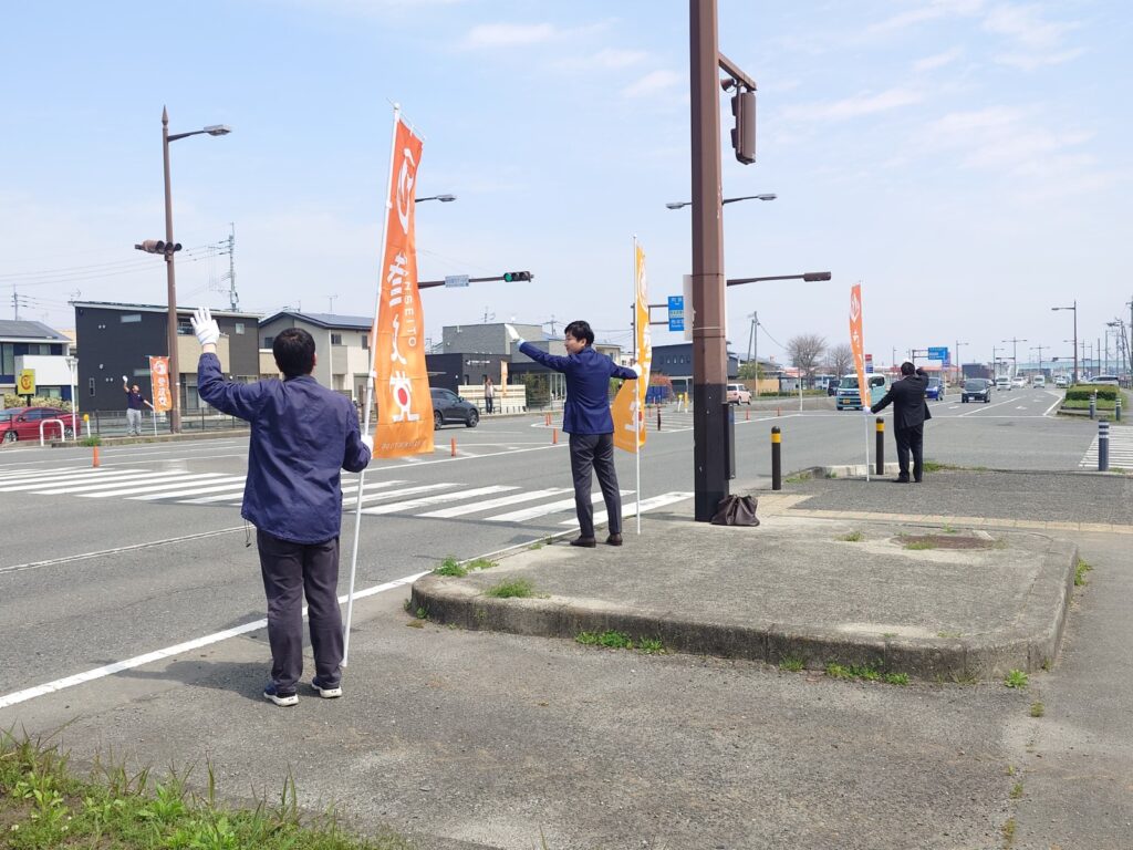 日が長くなってきたため、帰宅時間帯に合わせた辻立ちが実施できる時期となりました。