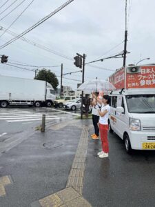 【7月18日PM】自衛隊正門前 〜 御代志駅前 〜 大津町 X Facebook はてブ LINE LinkedIn コピー 2025.07.18 自衛隊正門前 御代志駅前 一次産業を守ることの大切さ 日本の未来を考える子どもを育むための歴史教育の必要性を訴えました! 菊陽町界隈 税金の支払いに苦しむ事業者の声 子ども達との時間を大切にしたい親の声 今の日本には減税が必要であるという事を訴えました! 肥後銀行大津支店前 ありがとうございました! このあと19時より個人演説会(大津オークスプラザ)です。