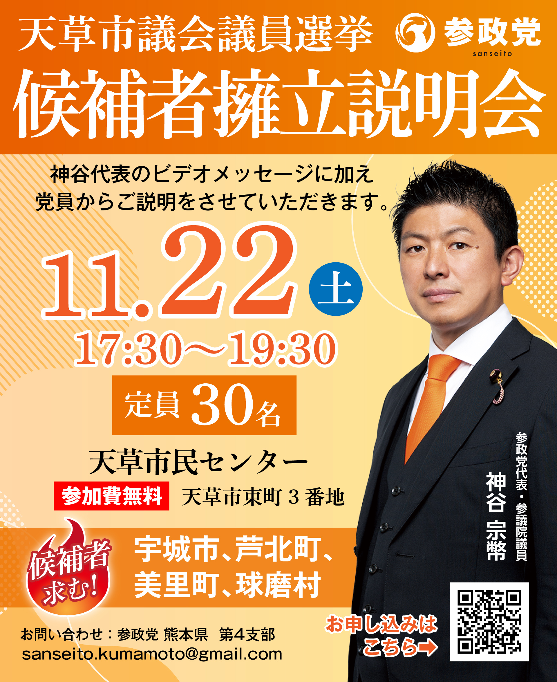 このたび、天草市議会議員選挙(令和8年3月執行)に向けた候補者擁立に関する説明会を開催いたします。