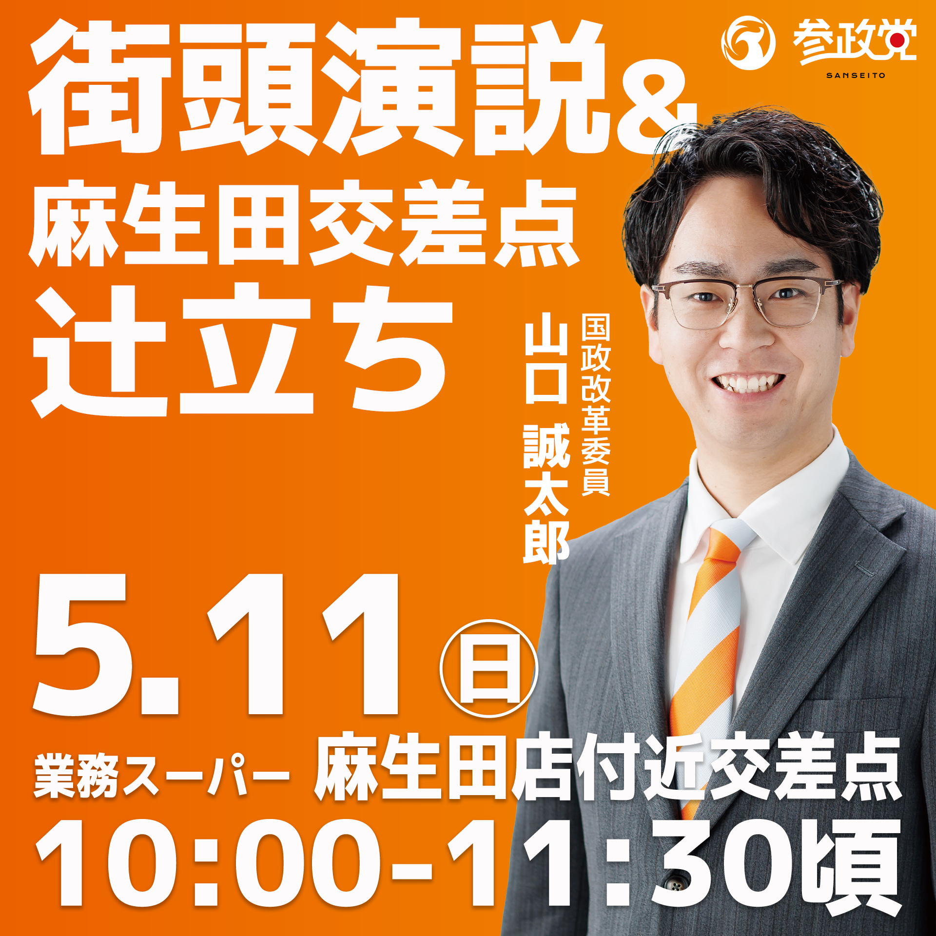 ・日時 5/11(日) 10:00-14:00 ・集合場所 9:45 サンリブ清水店 駐車場(寿司虎 麻生田店の駐車場付近集合) ・日程 10:00-11:30 麻生田交差点にて辻立ち&山口さんによる街頭演説、街宣車で龍田陣内辺りへ移動してポスティング 12:00-14:00 “もうやんカレー”さんにてランチ会🍛 ☆初めての方、ランチ会だけのご参加も大歓迎です☺️✨ 問い合わせ先:参政党熊本第1支部