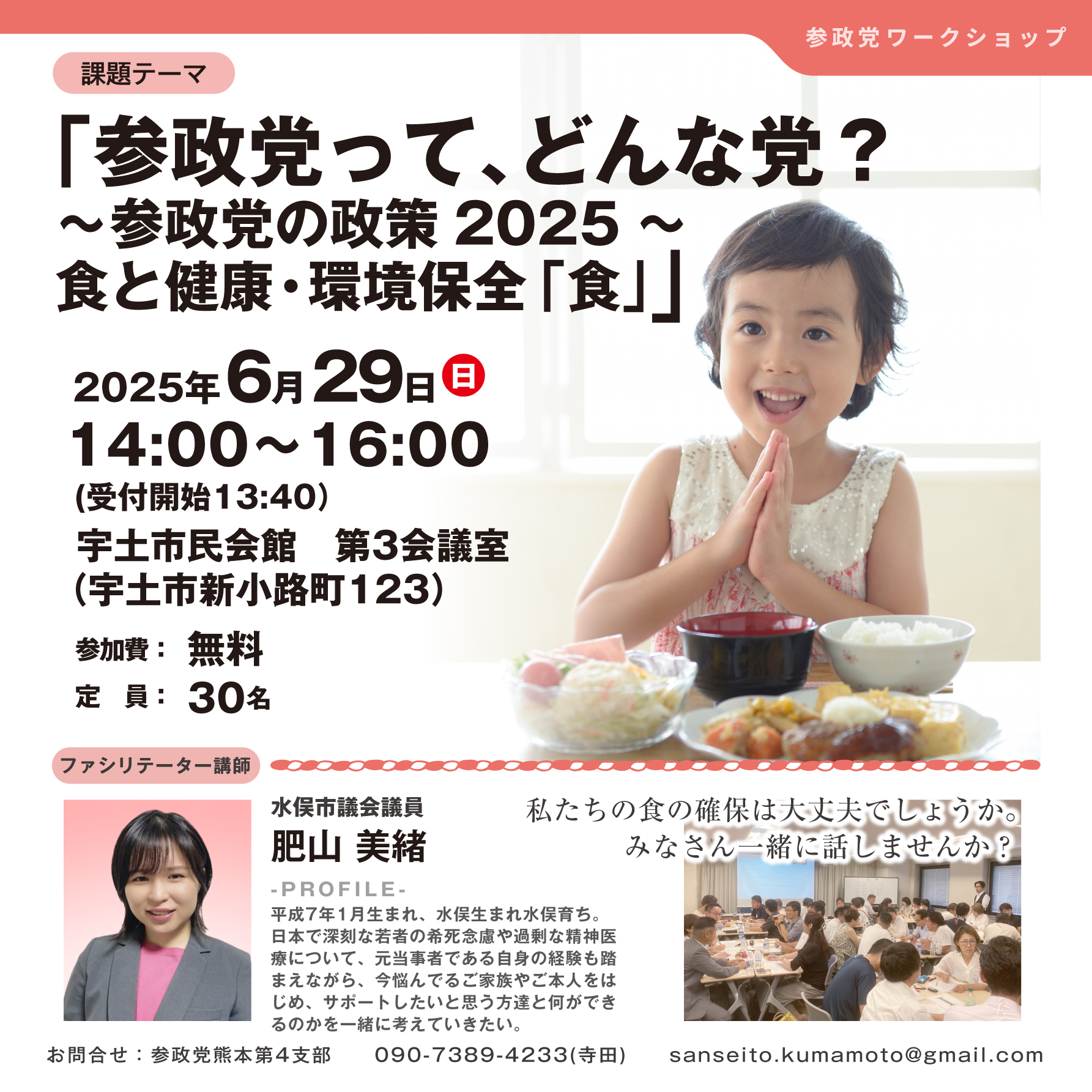 【2025年6月28日熊本市西区開催】参政党って、どんな党?~参政党の政策2025~食と健康・環境保全「食」