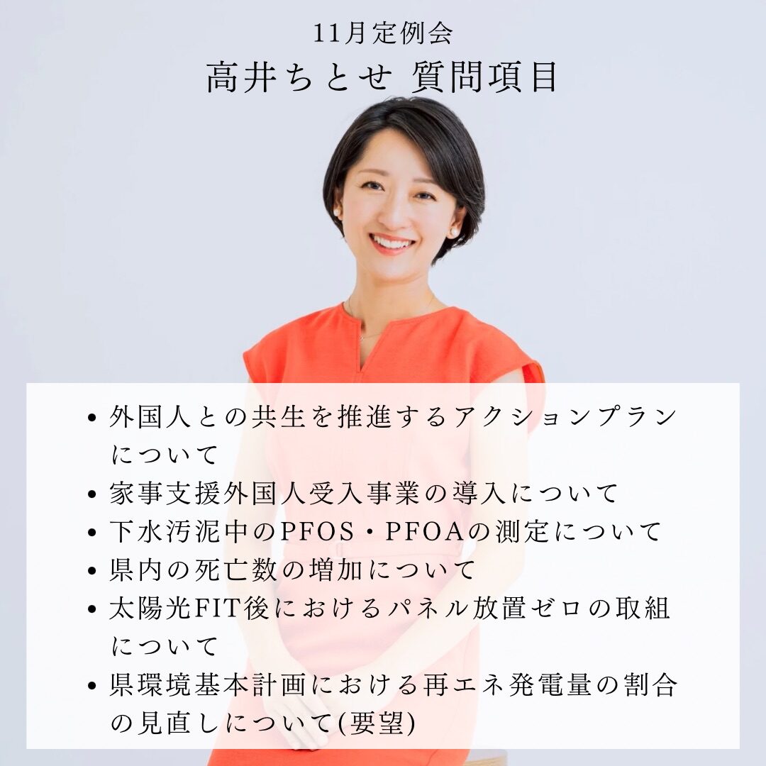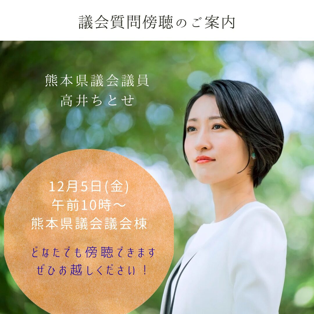 【熊本県議会】12月5日(金)10:00~ 高井ちとせ議員一般質問のお知らせ