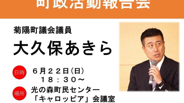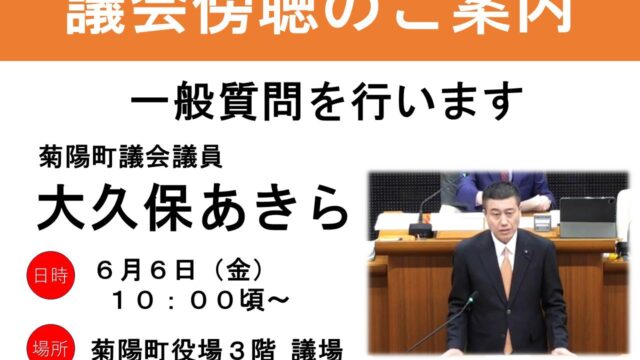 議会 【菊陽町議会 6月6日(木)10:00頃~ 】大久保あきら議員一般質問のお知らせ